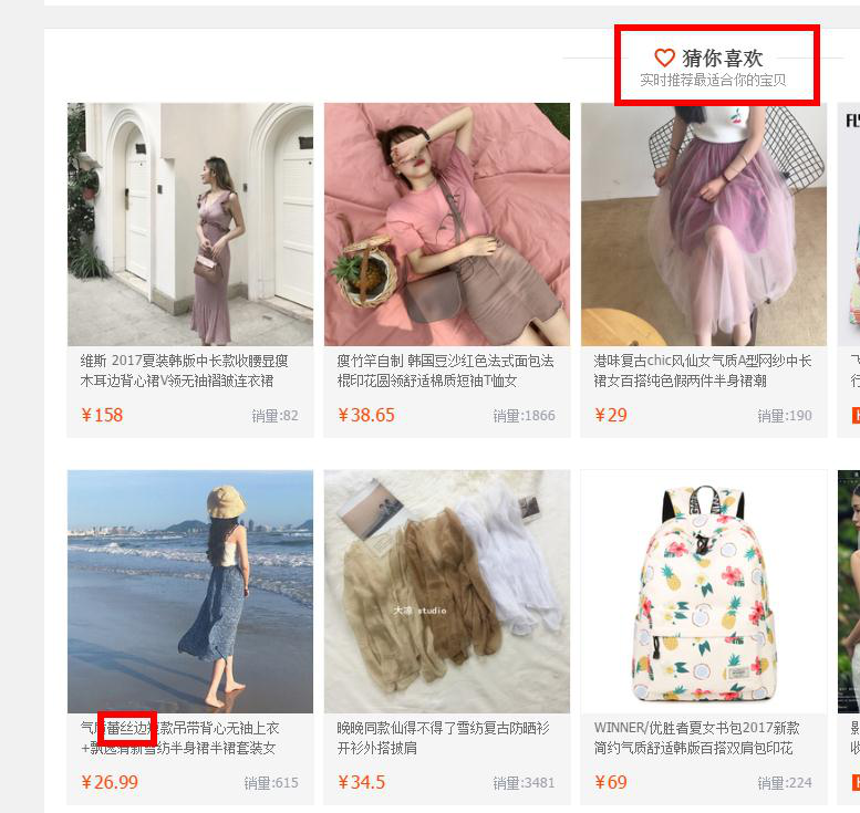 位置没那么神秘,就是猜你喜欢。这个东西对于顾客来说有人欢喜有人讨厌,因为它太精准了,只要你点开过一件宝贝并浏览了更不说收藏加购了,那么它会马上挑选类似的宝贝进行展示,比方说你只是点开了玛卡这个茶叶,那么你的猜你喜欢将会全部换成茶叶类的或者其他店铺的玛卡,甚至连成人用品都可能给你弄上来,不过他确实给了顾客更多能挑选的产品,直到有正对顾客的胃口的宝贝被收藏加购甚至下单,当然也给了卖家更多的展示机会,提升你的人气和你的排名。